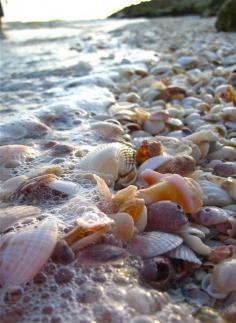 Sea shell covered beach. Blind Pass, Sanibel Island, Florida