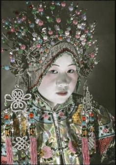 China | A woman wearing a headdress. Format; hand painted lantern slide | Part of the Powerhouse Museum Collection
