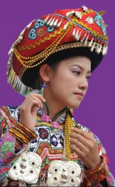 China | Yi people have a tradition of wearing colorful headgear | A Yi woman's headgear reveals her age and social identity | To read more click on the image. © Women of China