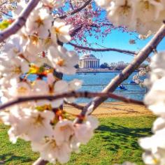 Cherry trees and the Jefferson Memorial in DC. Photo courtesy of missjetsetter on Instagram.