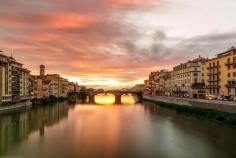 Florence, Florence, Italy - Sunset over the Fiume Arno in
