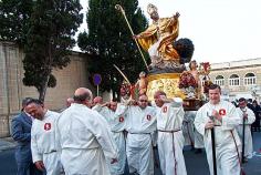 Priests carry the icon of St. Publius through the streets in Floriana, Malta