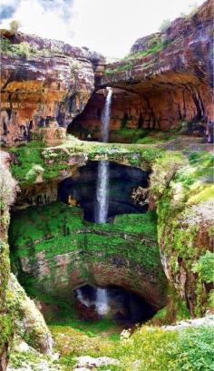 Baatara Gorge, Lebanon. Triple bridge waterfall.