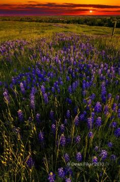Sunset on Sugar Ridge Road, Bluebonnets in Ennis, Texas, United States