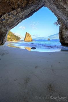 Sunrise in Cathedral Cove Rock in the Coromandel Peninsula - New Zealand