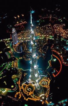 tallest building in the world from a helicopter at night