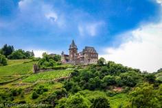 Rüdesheim am Rhein, Rüdesheim am Rhein, Germany - Take a day cruise from Rudesheim to Koblenz for a full day of charming towns, wine vineyards draping the mountains, and ancient castles peaking over the mountain cliffs like this one. BUCKET LIST! thetradingtravele...