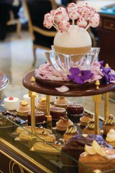 The cart of pastries to taste at Le Galerie, Four Seasons Hotel George V Paris