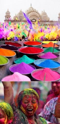 Holi Festival - a Hindu spring tradition where people throw brightly colored, perfumed powder at each other in celebration of spring...Soooo MAGICAL!