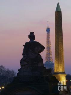 Place De La Concorde and Eiffel Tower in the Evening, Paris, France, Europe Photographic Print at Art.com