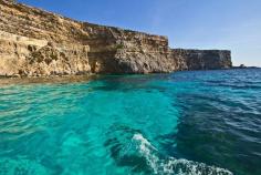 Sea cliffs of Comino rise vertically from exquisitely clear turquoise water surrounding the smallest of the Maltese Islands