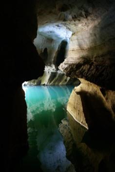 Phou Hi Poun National Bio-Diversity Area, Khammouan, Laos - This is just one of the amazing lakes we visited on our two day hike through the Phou Hi Poun National Bio-Diversity Area. Half on the lake is an open area the rest is inside a cave. Because of the limestone the lake has a bright blue color. We didn’t Photoshop this picture at all. #Laos #trekking #lake