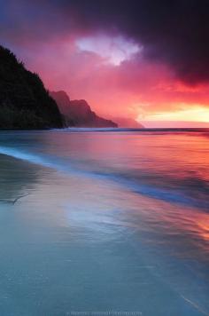 Extreme red sunset, Hawaii, Pacific Ocean.