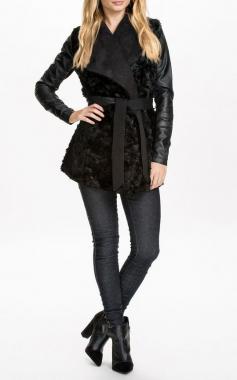 Black Faux Fur Contrast PU Leather Outerwear