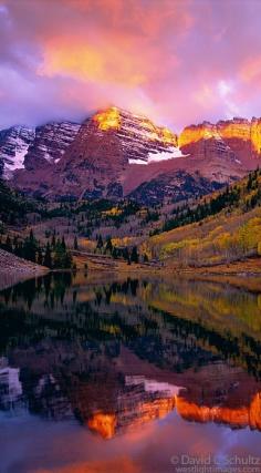 Autumn sunrise on the Maroon Bells near Snowmass, Colorado • photo: David C. Schultz