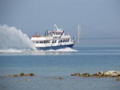 A Star Line Mackinac Island Ferry departs for St. Ignace.