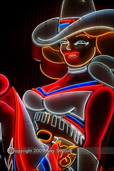 Vegas Vickie neon under the canopy on Fremont Street, Las Vegas.
