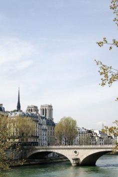 The Pont Louis-Philippe bridge across the Seine with Notre Dame and the Eiffel Tower in the distance