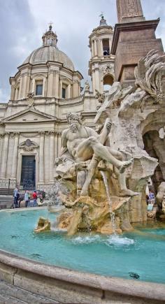 Fiumi Fountain, Rome, Italy - It seems that rain scared away all the other tourists. We strolled through the streets of Rome and randomly found this fountain.