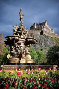 awesomel The Queen Street Fountain with the Edinburgh Castle in the background