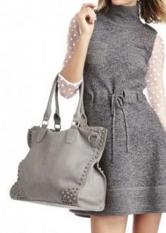 Women's Ash Grey Vegan Leather Tonal Stud Tote