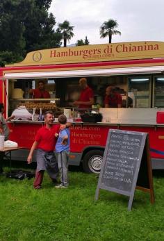 The food truck trend has come to Florence: At this mobile eatery, you can sample hamburgers made from the excellent local Chianina beef, and wash them down with local wine.