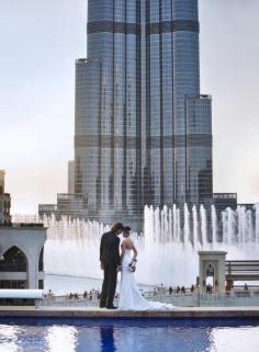 Wedding under the Burj Khalifa Tower, Dubai, United Arab Emirates.