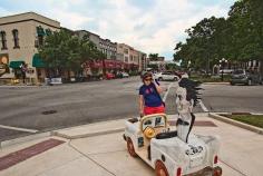 One of the main stops on Route 66 in Illinois is Pontiac, where mini cars are scattered around town and memorials honor Abraham Lincoln