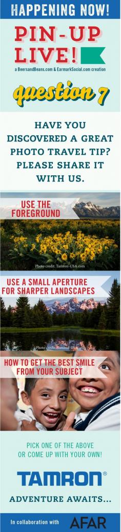 Have you discovered a great photo tip for travel or the holidays? Please share it with us in the comments and if you have a link to the photo share that too so we can all see your work. :) #PinUpLive