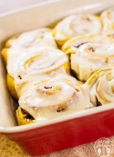 Pumpkin Cinnamon Rolls with Cream Cheese Frosting on { lilluna.com }