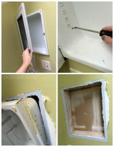 Bathroom Makeover: Removing the existing medicine cabinet to create a stylish new niche - Follow along on this DIY Bathroom Makeover Challenge in 30 Days (or less)