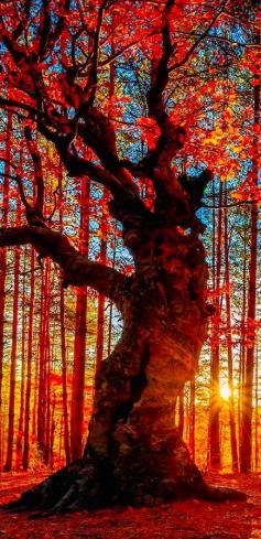 Autumn forest near the Belintash Rock landmark in the Rhodope Mountains of Bulgaria 〽️