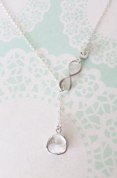 Personalized Silver Glass Drop and Infinity Lariat