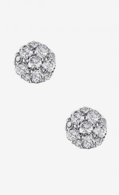 10K White Gold Pave Diamond Ear Pin Stud Earrings