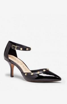 Women's Black Faux Patent 2 1/2 Inch Mid Heel Pump