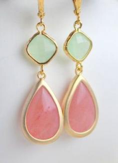 Bridesmaid Jewel Earrings in Coral Pink Mint