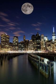 0ce4n-g0d: Super moon over the Brooklyn Bridge Park in New York City, NY, USA