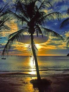 Pretty Sunset colorful sunset beach ocean sea palm tree nature