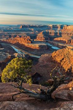 U.S. Overlook at Dead Horse Point, Moab, Utah. Dead Horse Point State Park is a state park featuring a dramatic overlook of the Colorado River and Canyonlands National Park. The park is so named because of its use as a natural corral by cowboys in the 19th century