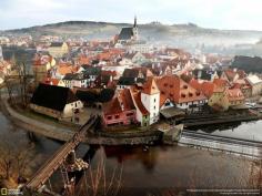 This photo was captured at noon on December 25, 2013, from the castle which is located on the edge of the small town and is the perfect viewpoint for the panorama of the almost intact historical town. Location: Český Krumlov, South Bohemian, Czech Republic