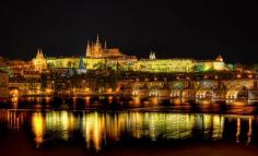 The Prague Castle, Prague, Czech Republic. In the foreground is Vltava River (German: Moldau) and to the right is the famous Charles Bridge.
