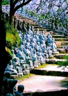 Statue Stairs, Kyoto, Japan. Dedicated to the Ashikaga family, the statues represent each Ashikaga ruler.The Ashikaga clan was a prominent Japanese samurai clan which established the Muromachi shogunate and ruled Japan from roughly 1336 to 1573