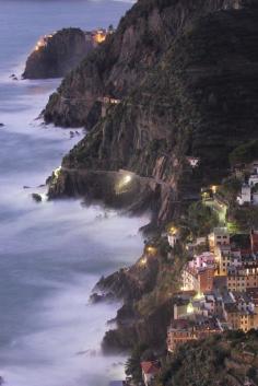 Riomaggiore at night, Cinque Terre, Liguria, Italy la Spezia