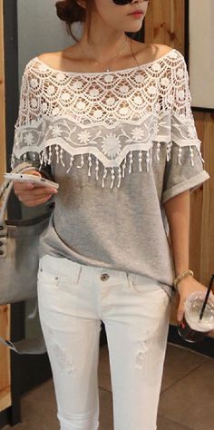 Lace Cutout Shirt Women Handmade Crochet Cape Collar Batwing Sleeve T-shirt get free domain on qi.fi