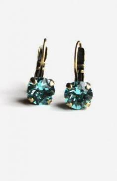 Turquoise swarovski crystal earrings hand set in a brass setting
