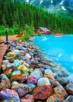 Colorful Rocks at Rocky Shore Lake Louise Canada