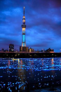 Sumida river was filled with millions of solar-powered LED light balls during Tokyo Hotaru Festival