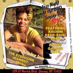 Thursday jazz jam at Smoke BBQ Pit located at 129-21 Merrick Blvd in queens, NY on a Thursday December 4, 2014 from 7:30pm to 10:30pm