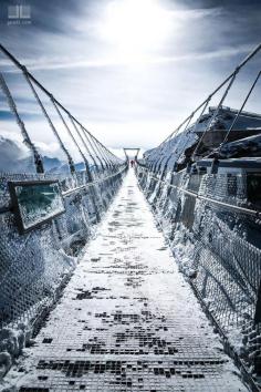 A Walk in the Sky, Mount Titlis, Switzerland - the highest suspension bridge in Europe at 3040m high.