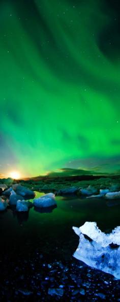 15 reasons why Norway will Rock your World | 7. Incredible strong northern lights during moon setting behind glaciers, Norway